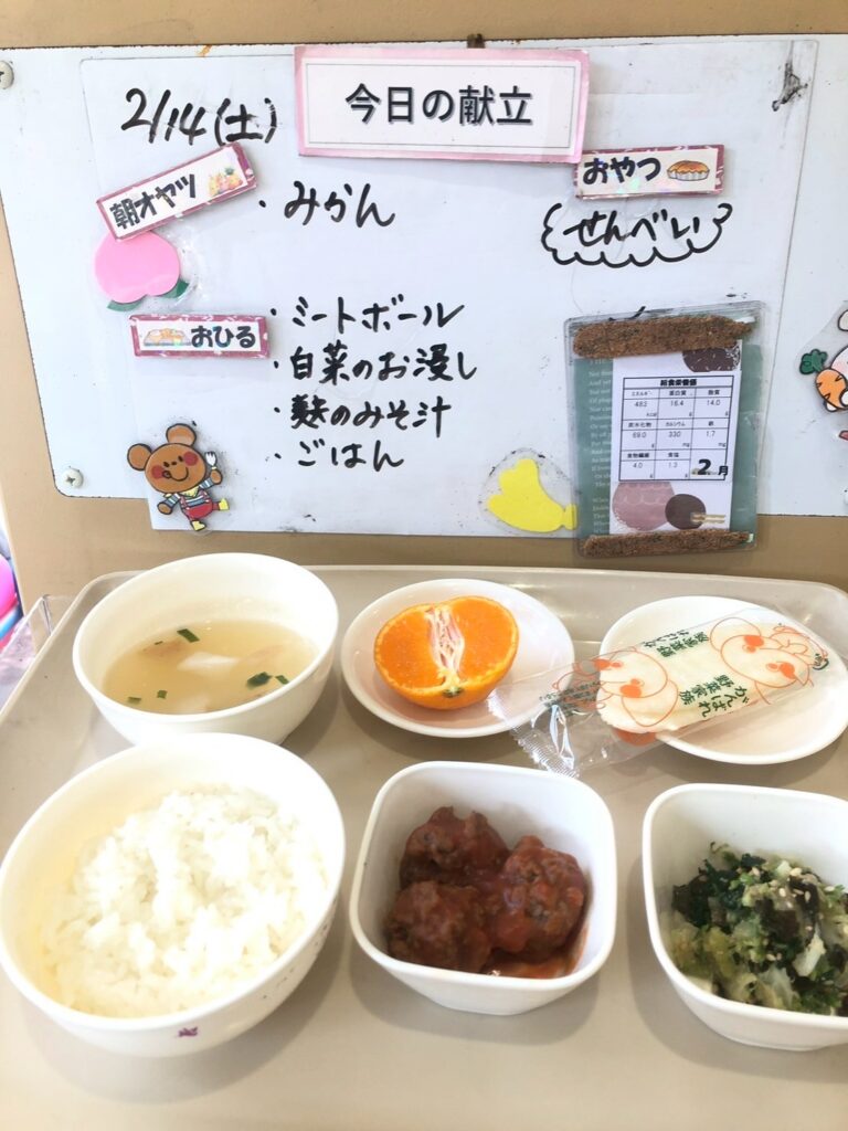 今日の給食 園について みんなの1日 お問い合わせ 未来ブログ 給食 土曜日の給食~2/14 2026.02.14 ミートボール、白菜のお浸し、おかわりしてたくさん食べました(´▽`) 前の記事へ 一覧へ戻る