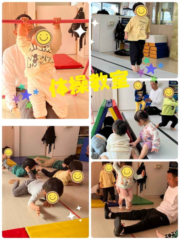 毎週木曜日に行っている体操教室🤸♀️です。めろん組さんで長い子どもで2年間浦田先生の体操の指導を受けています。体操は全てのスポーツの基礎になるので、柔軟性やバランス感覚、跳躍力等遊びながら身に付いています❣️3月の体操参観が楽しみですね😆