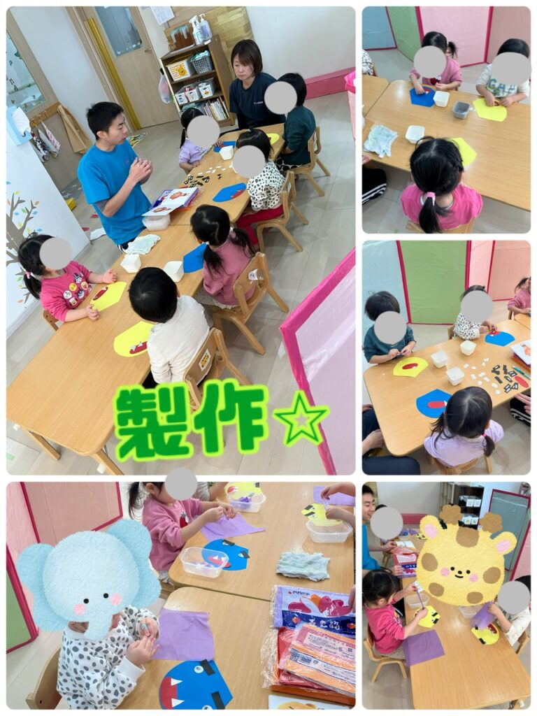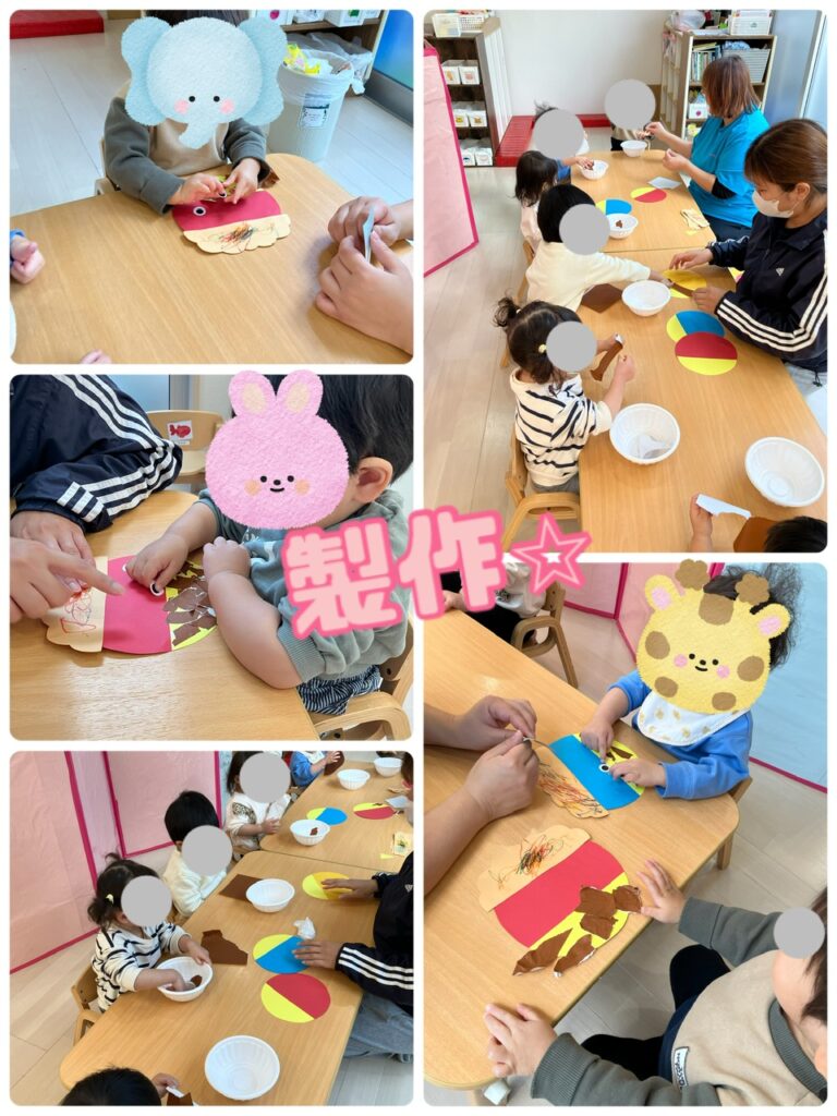 めろん組さんも製作活動を行いましたよ♪ 絵本で色んな鬼👹の顔を見てからパーツを貼り合わせていきました♪どんな作品になるのか楽しみですね✨