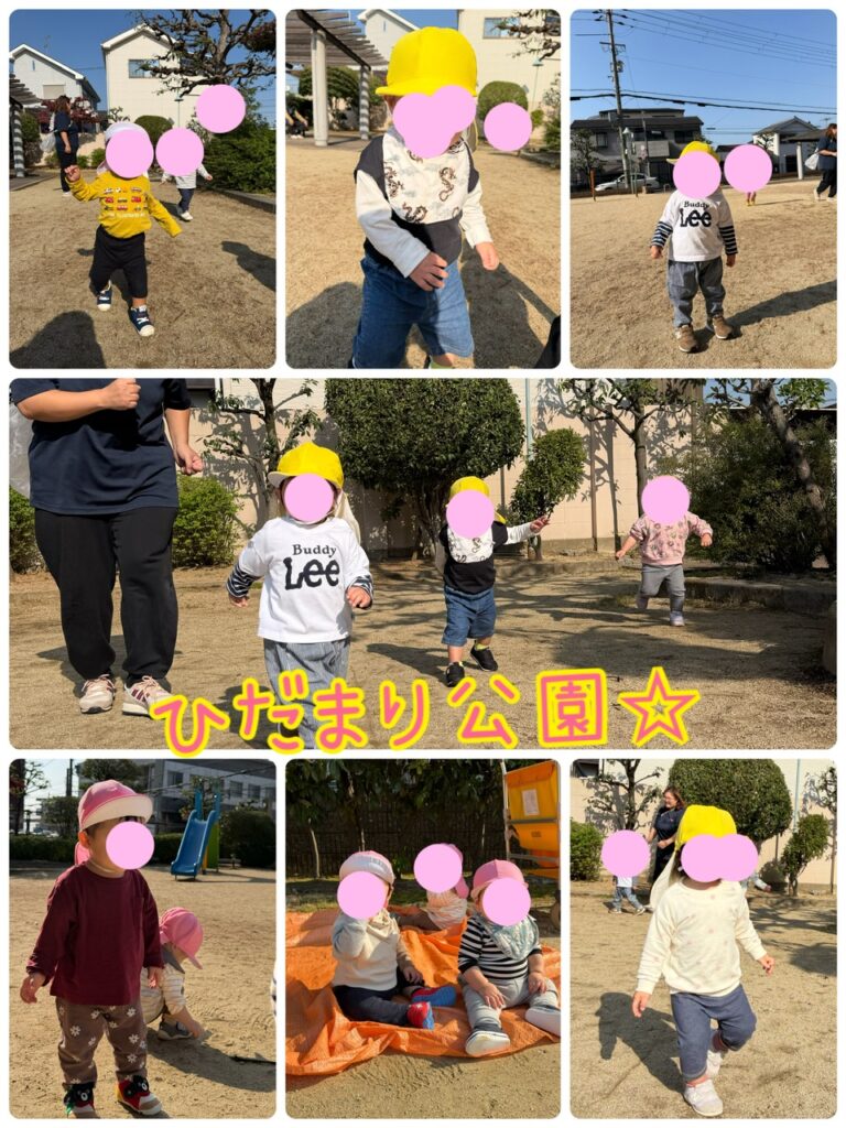 徒歩と散歩車で移動して直ぐに公園に到着✨ 上着無しで丁度いい陽気の中、広場を走り回って遊びました♪ ばなな組さんはレジャーシートの上からシャボン玉🫧を追いかけたり、お兄ちゃんお姉ちゃんの所に行こうと頑張って靴を履いて歩いて移動してましたよ✨今週末はいいお天気に恵まれそうなので公園とかにお出かけするのもいいかもしれませんね😊
