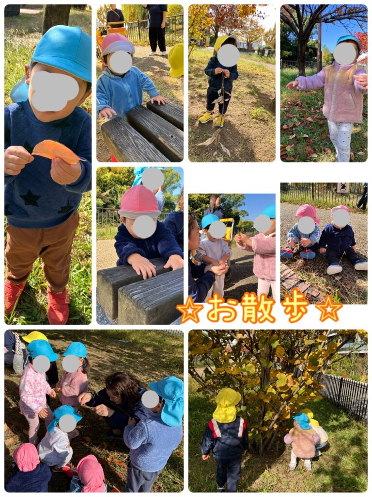 早い物で11月の活動も今日が最終日✨少し風はあるものの穏やかなお天気🌤️に恵まれ、絶好のお散歩日和となりました♪ 散歩車と徒歩組に分かれて、少し足を延ばして「向陵公園⛲️」まで秋を探しに🍂出かけました😆