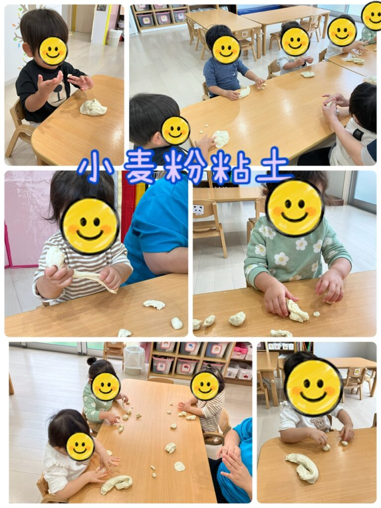今日は時間関係で先生が作った粘土で遊びました♪ 丁度いい硬さで千切ったり丸めたり型押ししたり色んな遊びに挑戦しましたよ✨