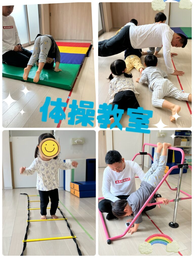 朝夕の冷え込みが強くなり、園の廊下にはカラフルな上着が並ぶ様になりました❣️毎週木曜日は体操教室の日です✨ 浦田先生が来るまで各クラスに分かれて活動しましたよ♪