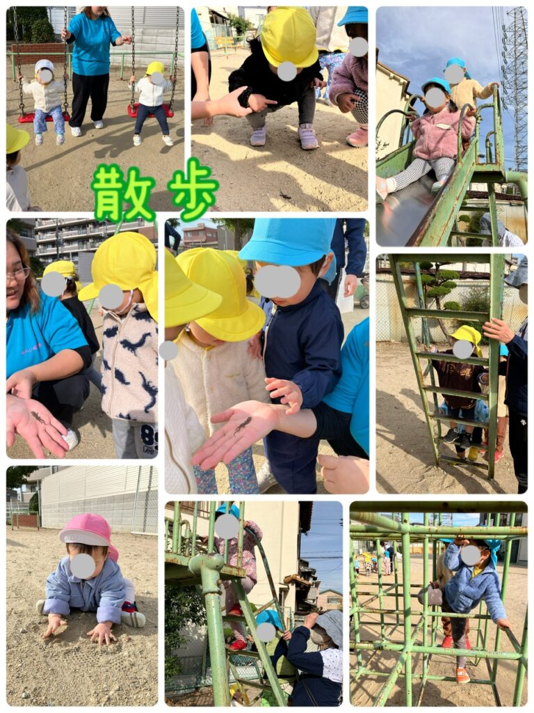 今日も日中はとても良いに恵まれ☀️とっても過ごしやすかったですね✨ 朝夕は冷え込んでいますので寒暖差で体調を壊さないように気をつけましょう❣️ 今日の百舌鳥園のお友だちは全クラスでお散歩に出かけましたよ😊