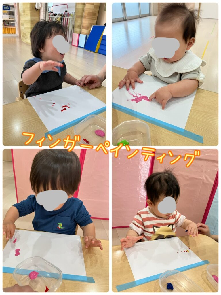 ばなな組さんはフィンガーペインティングに挑戦しました♪ 小さな指で☝️頑張って色塗りしました❣️