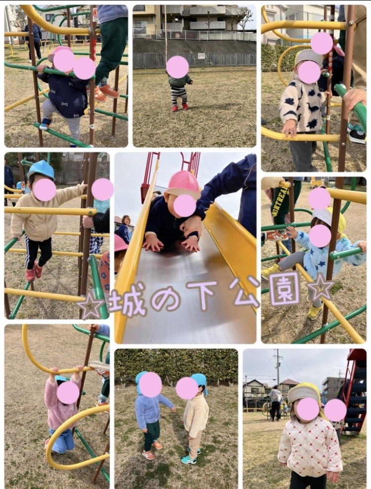 2/20 ☆城の下公園☆ 2026.02.20 [今日のようす] 今日は城の下公園へお散歩に行きました♪ めろん組さんはお散歩ロープをしっかり握って、いちご組さんは順番に先生と手を繋いで歩きました😊 公園では滑り台や、ジャングルジムで遊び、追いかけっこしてたくさん走りました🌈 Screenshot
