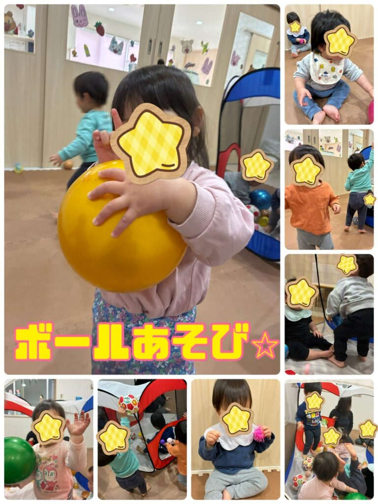 今日は季節外れの寒さで💨真冬に逆戻りした様に感じました❣️寒暖差で体調崩さない様十分ご注意ください。ばなな組さんといちご組さんは園庭に繰り出す予定でしたが急遽お部屋でボール🔴🟡🟢遊びを楽しみましたよ😊