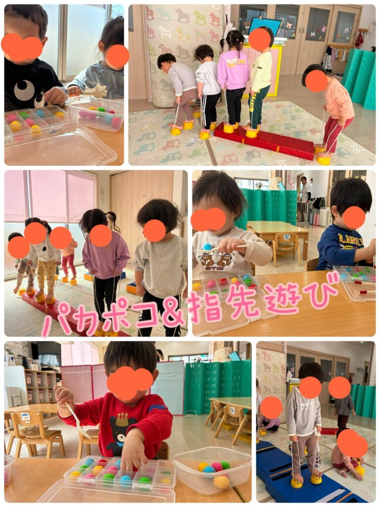 いちご組さんは指先遊びを楽しみました♪めろん組さんはパカポコで身体を動かしました✨