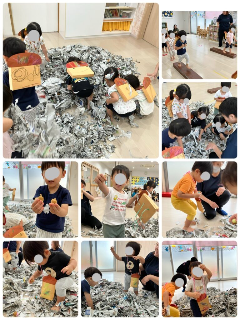 ばなな組さんは、たくさんの落ち葉🍂の中に有るドングリ探しに挑戦しました♪ 大きなどんぐりを見つけて大喜びしてましたよ❣️