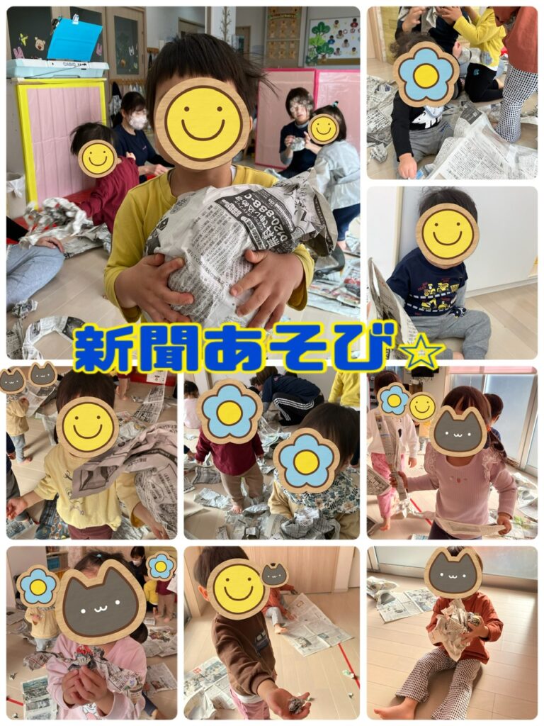 今日は1月の身体測定を行いました✨ 子どもたちも自分の成長が楽しみな様で、「大きくなったよ!」と伝えると「やったー✌︎」と喜んでいました♪ 身体測定の後は、全クラスで新聞遊びを楽しみました😊