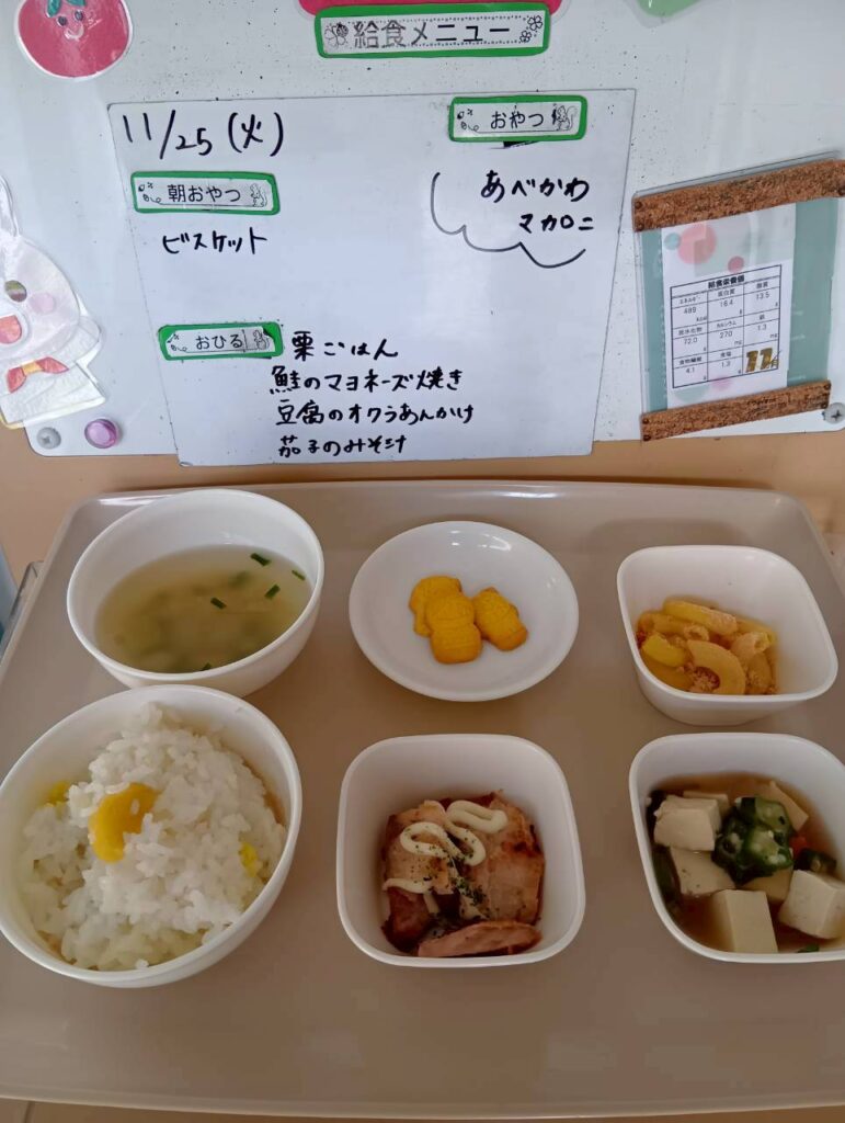 今日の給食 園について みんなの1日 お問い合わせ 未来ブログ 給食 今日の給食〜11/25 2025.11.25 朝のオヤツがおせんべいからビスケットにかわりました♪ よく食べました(^o^) 前の記事へ 一覧へ戻る