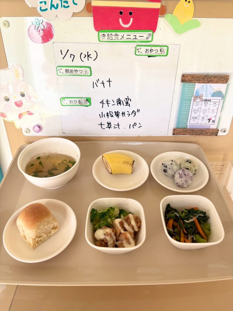 チキン南蛮おかわりしていました(^^)おにぎりの具は 若菜、ごま、ゆかり です♪